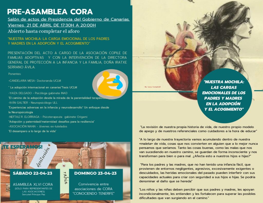 Desde la Comisión de Educación de CORA, se ha elaborado este documento en formato díptico, para presentar en los centros educativos y en cualquier otra entidad y/o institución involucrada en la educación de las personas adoptadas y/o acogidas.